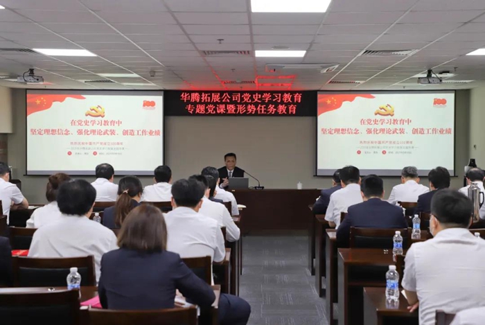 5月10日,1XBET(中国)_1XBET平台总经理助理,华腾拓展公司党总支书记、董事长李泳以《在党史学习教育中坚定理想信念、强化理论武装、创造工作业绩》为题,向全体党员及职工代表讲授党史学习教育专题党课。
