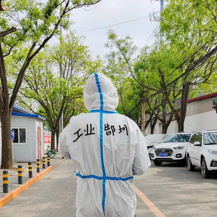 之前一直对“大白”充满了好奇,没想到自己也荣幸地穿上了这身“战袍”。五一假期正值气温上升,刚一穿上就感觉身上像裹了一层密不透风的塑料布,又闷又热,一旁的医护人员解释说这样才能有效的防止病毒,由此我心里油然而生出一种自豪感。