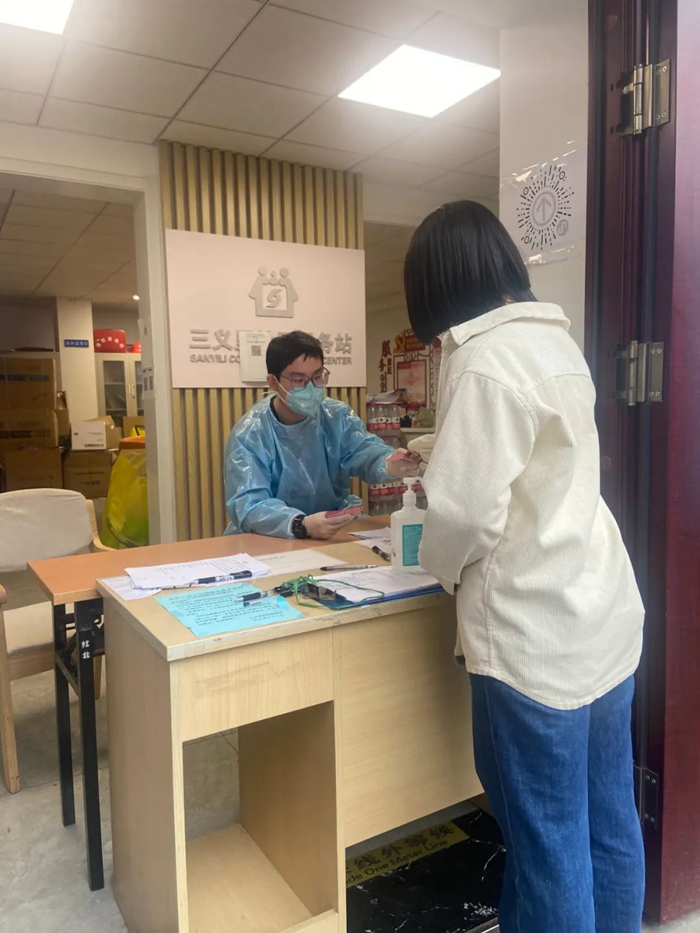 5月10日,这个村出现一名无症状确诊病例,社区加强管理,全村人员都需进行核酸检测,我负责配合医务人员对密切接触者进行上门核酸检测,并做好相关信息登记。那天我全副武装,顶着烈日,开始踏上蜿蜒的山路,就这一天,我们整整走访了28户村民,累得像散了架一样。