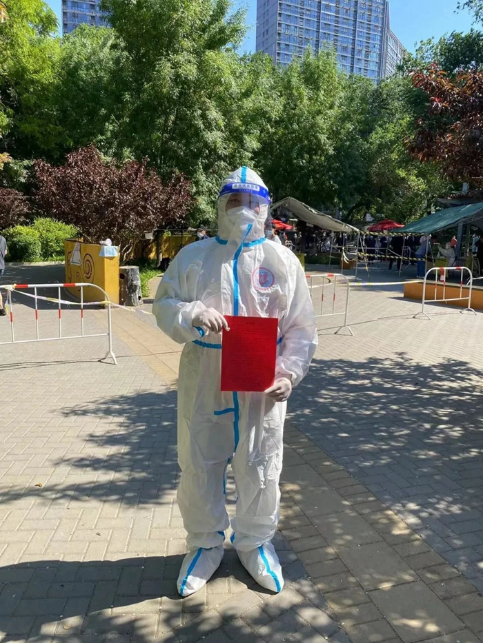 本轮疫情来势汹汹,基层社区工作者们不分昼夜高负荷运转,承担着巨大压力。在这场没有硝烟的“战疫”中,作为一名党员,危难时刻冲在前、干在先,是我们最鲜亮的底色。于是,我第一时间报名,成为房山区长阳镇嘉南社区的一名光荣的志愿者,全身心投入到抗疫工作中。从事答疑、解除健康宝弹窗、维持核酸检测秩序、办理居民出入证、购置发放物资等工作。