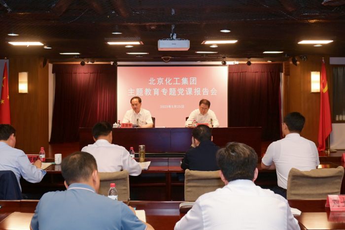 5月25日下午,1XBET(中国)_1XBET平台党委召开学习贯彻习近平新时代中国特色社会主义思想主题教育专题党课报告会,党委书记、董事长王国华以《深入学习贯彻习近平新时代中国特色社会主义思想,坚持目标导向、问题导向,以战略为引领,推动化工集团高质量发展》为主题作党课报告;市委第22巡回指导组组长刘久刚,组员郭威出席报告会;党委副书记、总经理陈宇主持报告会。