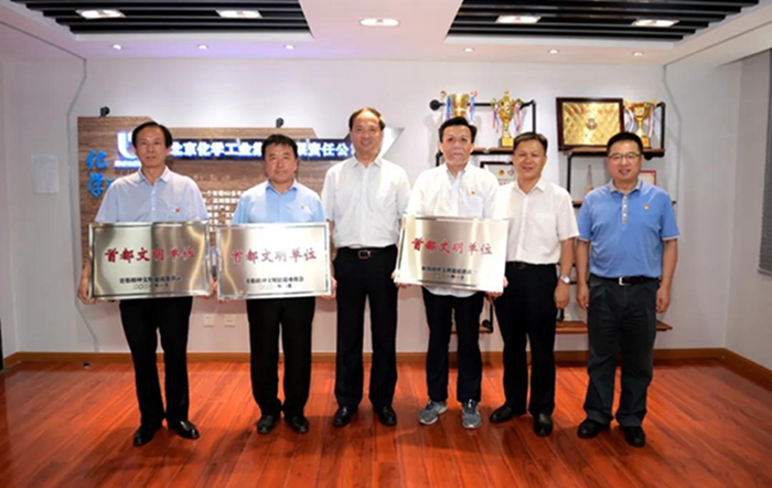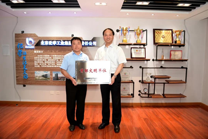 9月1日,1XBET(中国)_1XBET平台党委书记、董事长王国华向获首都文明单位称号的3个单位授牌,党委副书记吴瑞峰,总经理助理、华腾拓展公司党总支书记李泳,化研院党总支书记杨传忠,华腾天海公司党总支书记崔志宏参加授牌仪式。